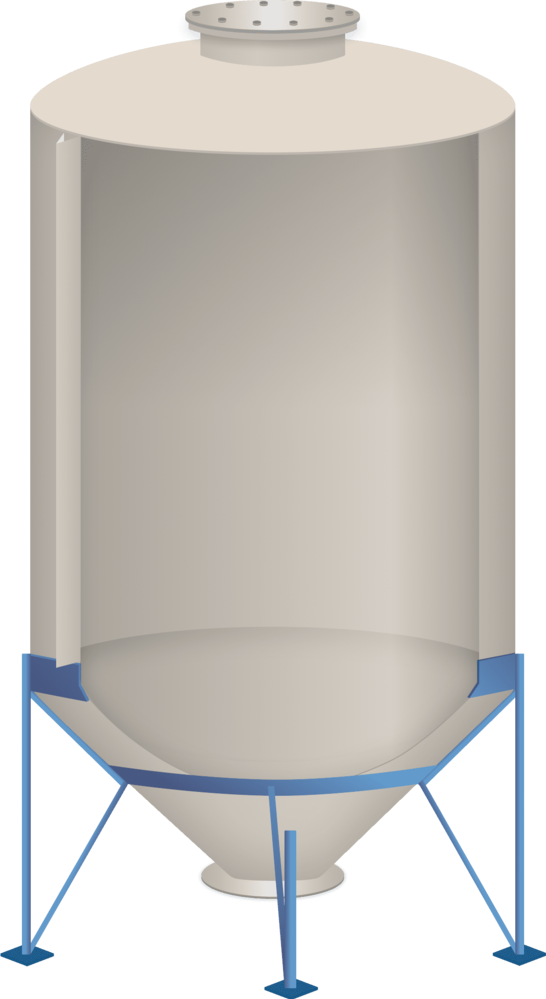 Силос объемом 6 м3 разработан таким образом, чтобы хранящиеся в нем вещества и материалы загружались механически и разгружались под действием естественных гравитационных сил, а именно под давлением от высоты столба материала, действующим на единицу площади вершины конуса.