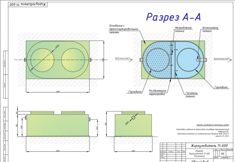 Монтаж Гринлос Жироуловитель 11-600 Горизонтальный Наземный