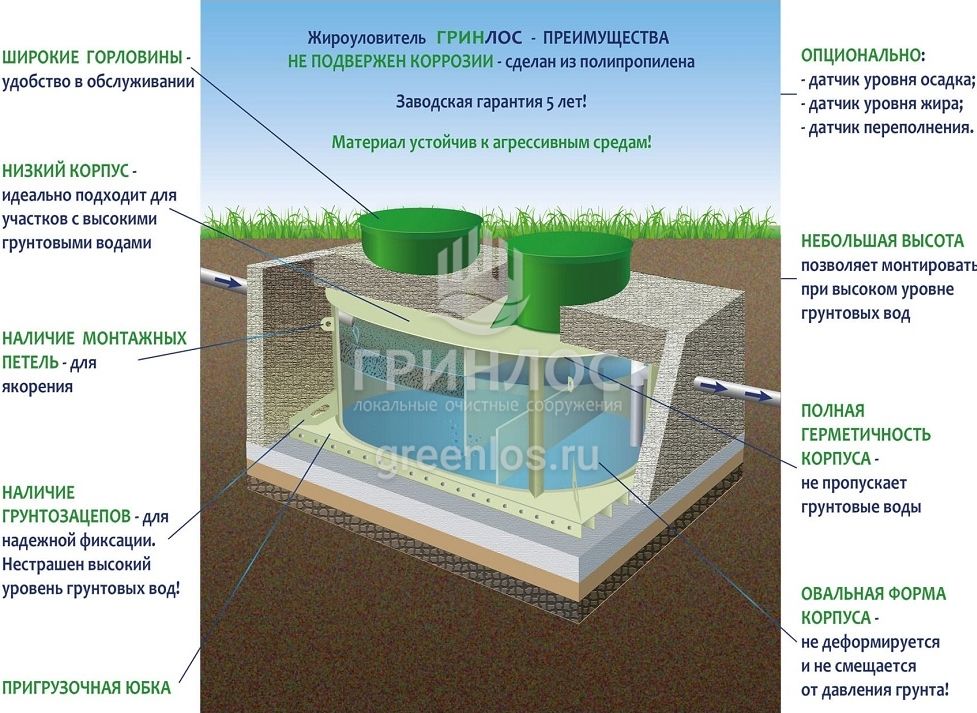 Преимущества Гринлос Жироуловитель 11-600 Горизонтальный Подземный