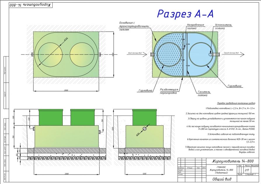 Монтаж Гринлос Жироуловитель 14-800 Горизонтальный Подземный