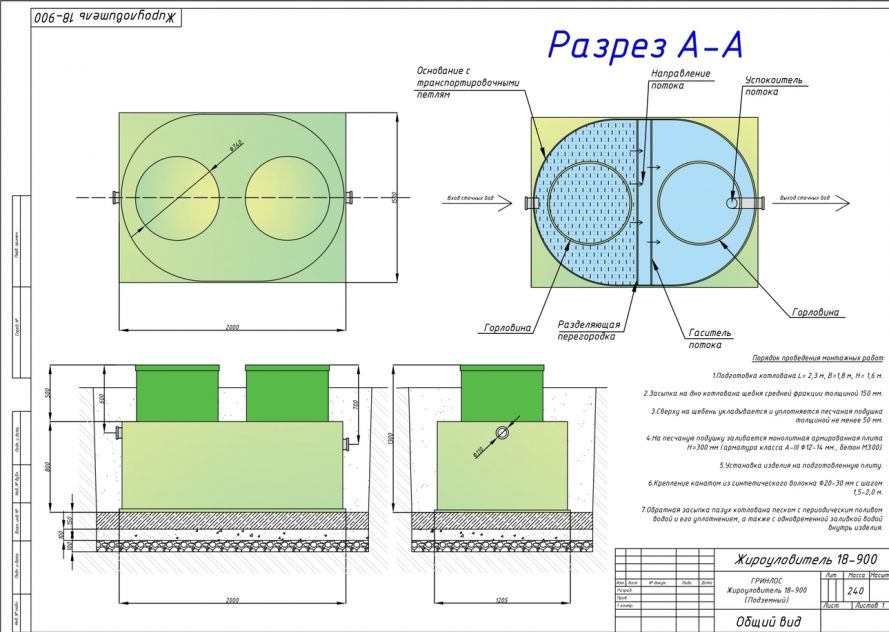 Монтаж Гринлос Жироуловитель 18-900 Горизонтальный Подземный