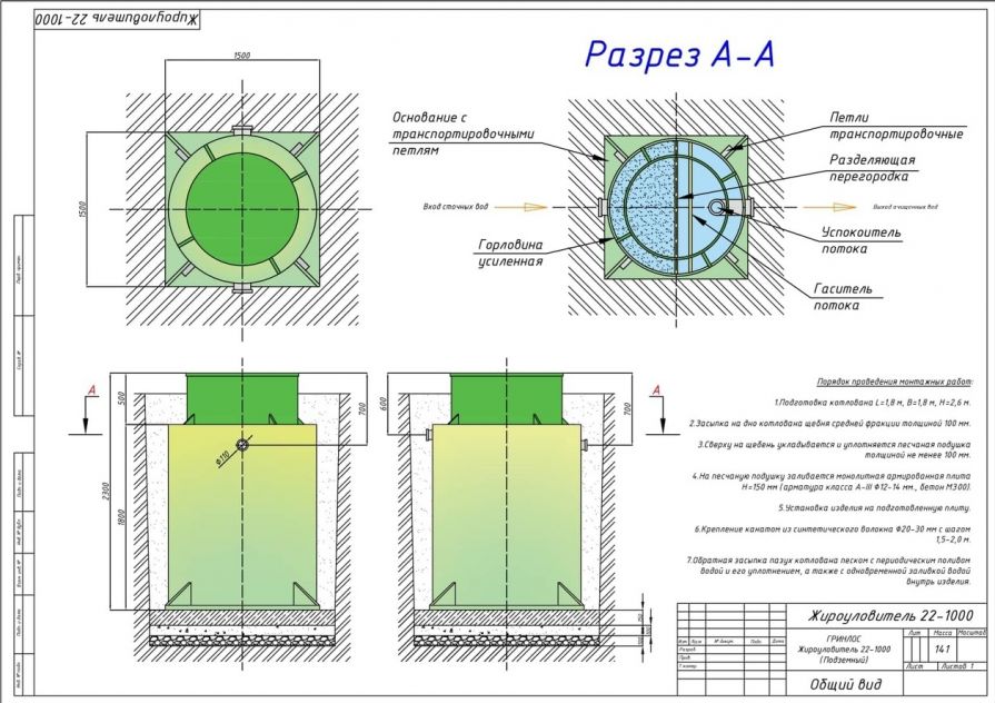 Монтаж Гринлос Жироуловитель 22-1000 Вертикальный Подземный