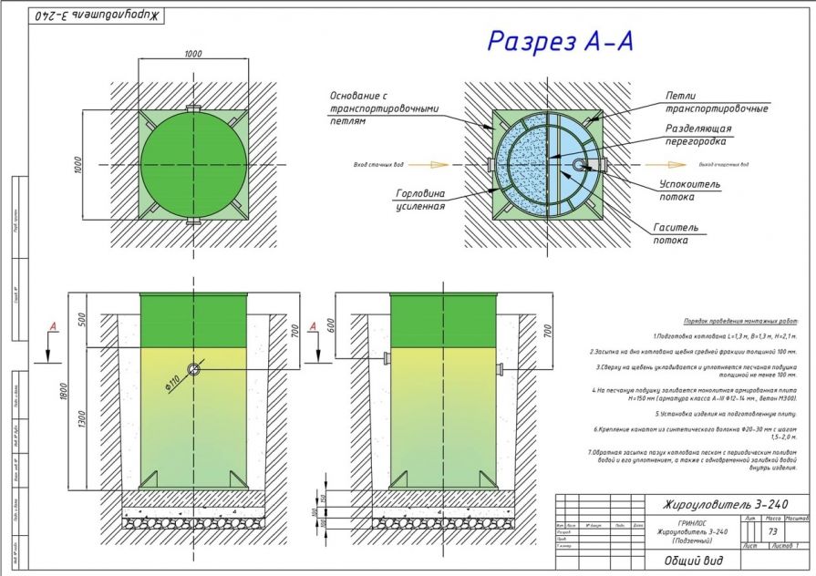 Монтаж Гринлос Жироуловитель 3-240 Вертикальный Подземный