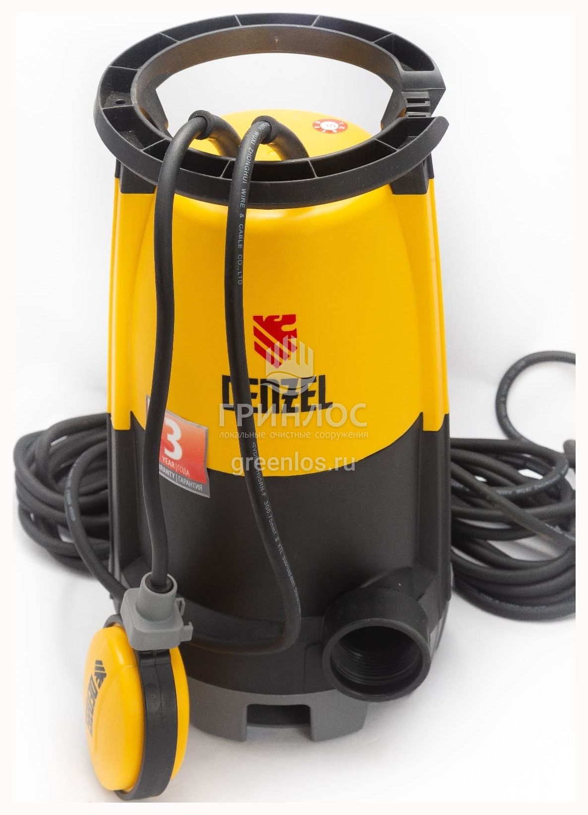 Дренажный насос Denzel DP-450S мощностью 450 Вт и производительностью 12000 л/ч обеспечивает напор 6 м и эффективно справляется с перекачиванием стоков с фракциями диаметром до 30 мм. Максимальная глубина погружения – 7 м.
