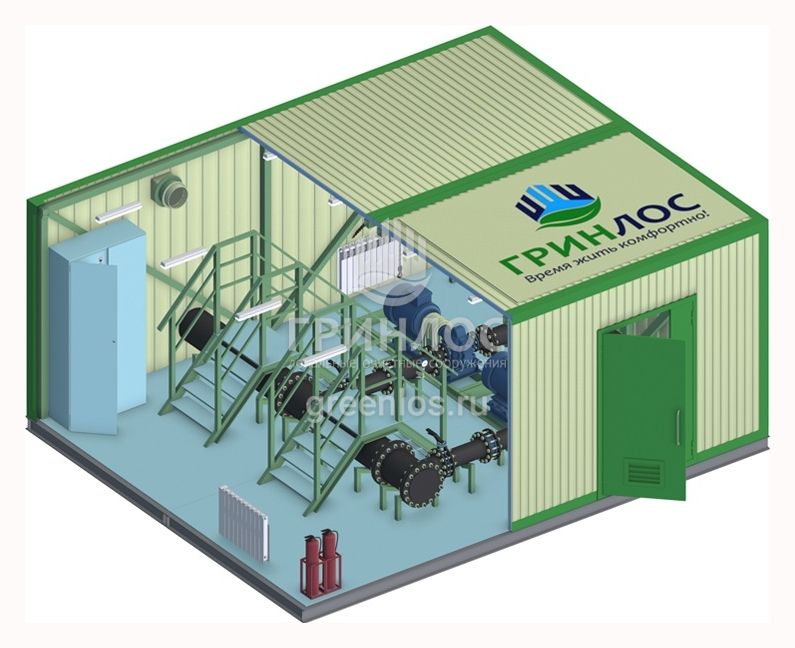 Прочный павильон защищает нефтеперекачивающую насосную станцию НпС 100-130 от механических и климатических воздействий, обеспечивая долговечность конструкции.