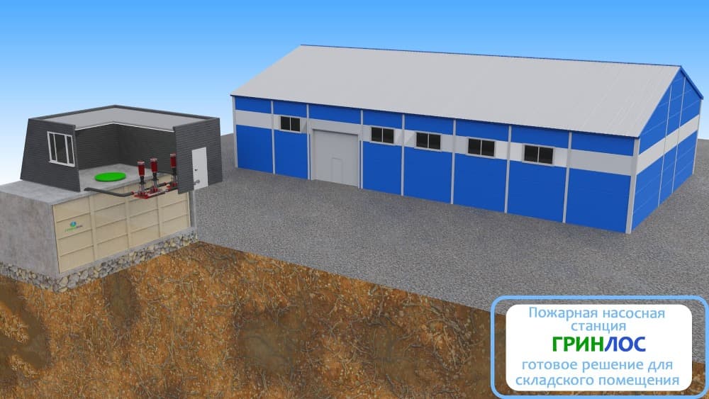 Ассортимент Гринлос для складских помещений состоит из сооружений для создания автономно функционирующей канализации, системы пожаротушения и оборудование для хранения различных веществ.