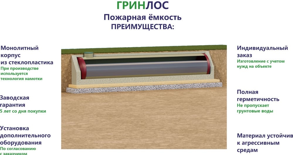 Особенности Гринлос Пожарный резервуар 100-3000 стеклопластиковый