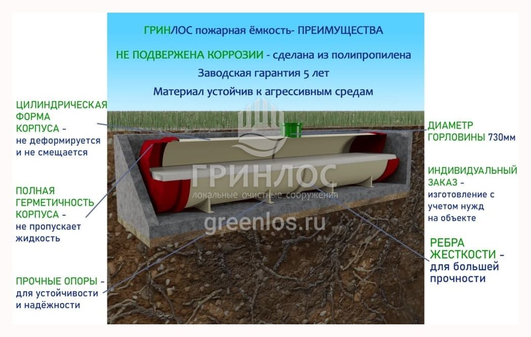 Особенности ГРИНЛОС Пожарный резервуар 150 м3