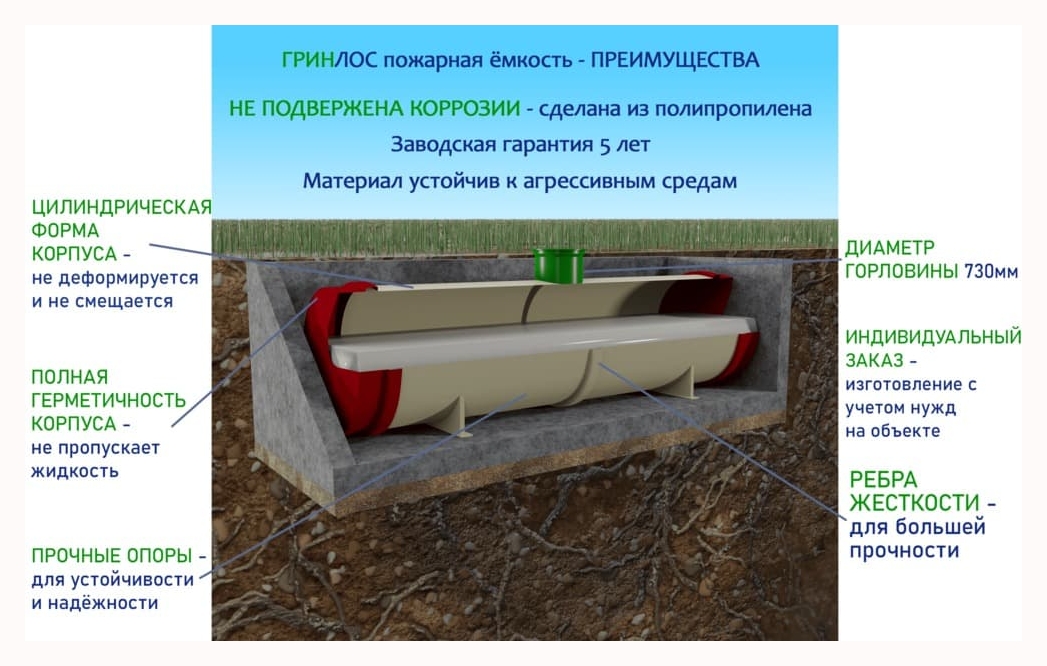 Особенности ГРИНЛОС Пожарный резервуар 65 м3