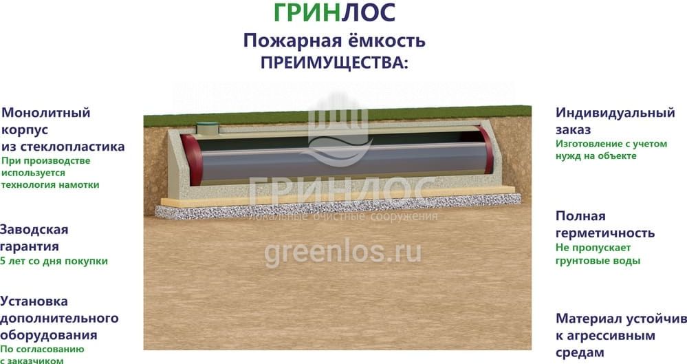Особенности Гринлос Пожарный резервуар 90-3000 стеклопластиковый