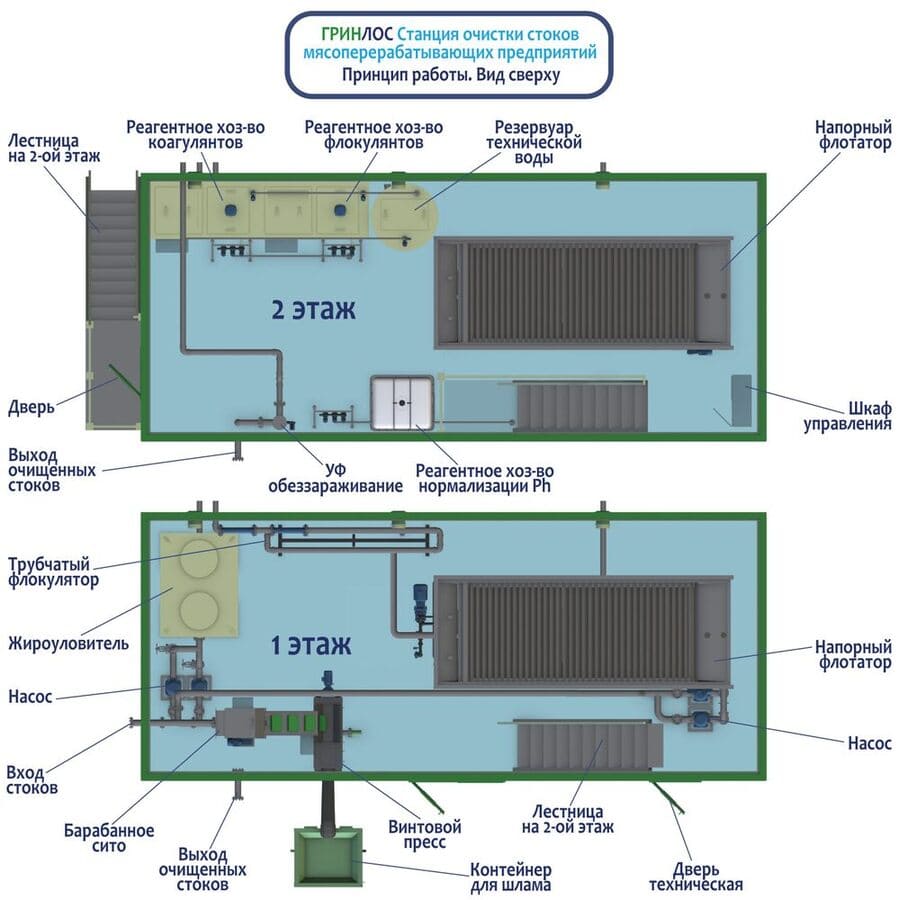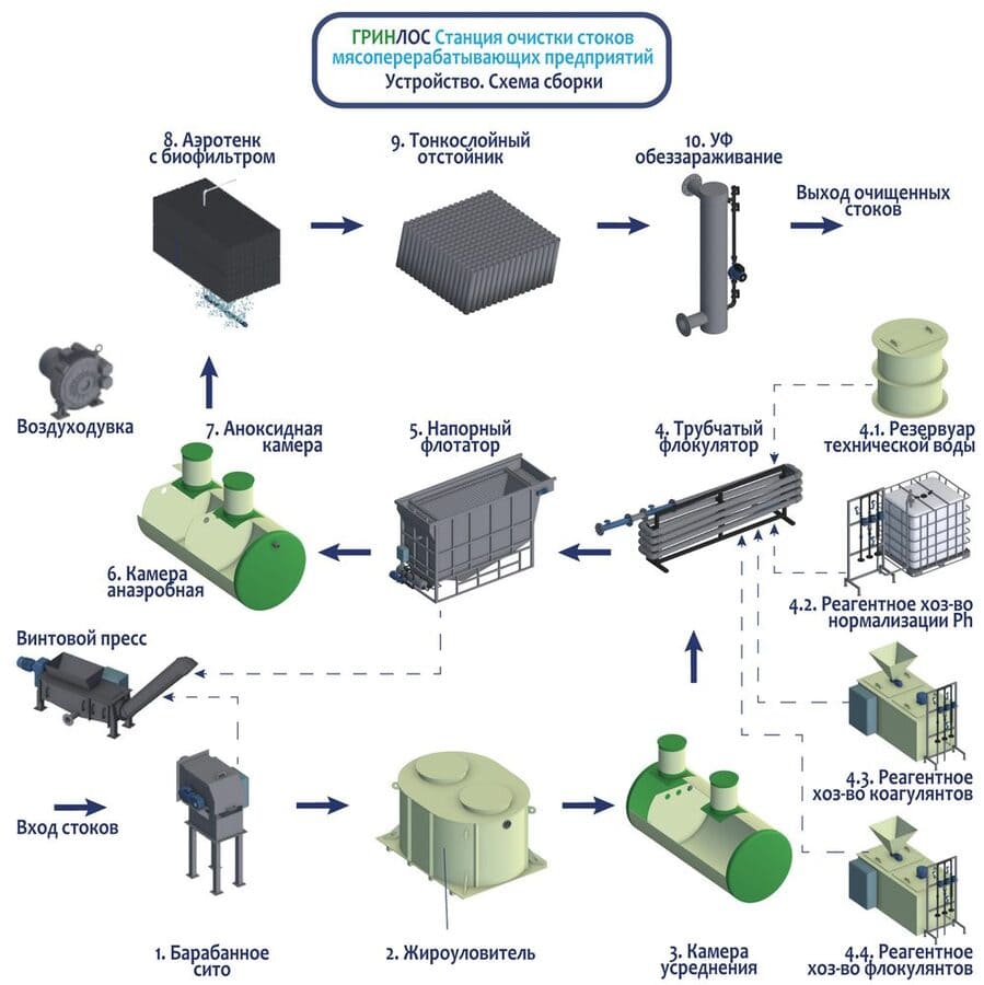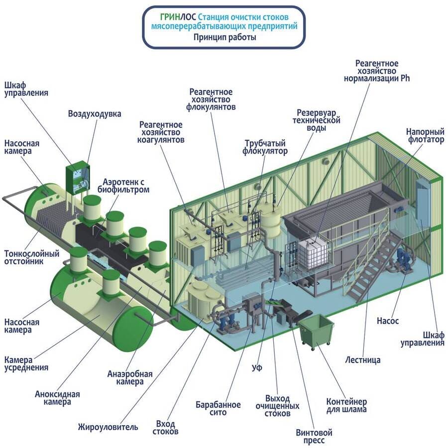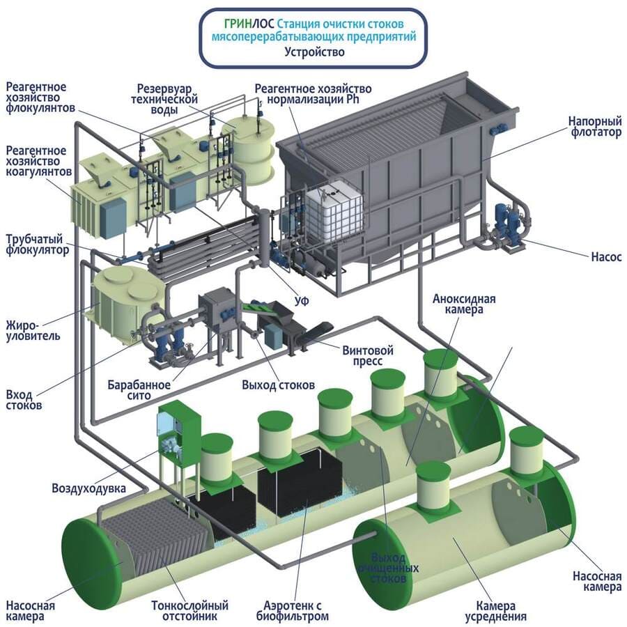 Схема внутреннего устройства станции очистки сточных вод пищевой промышленности